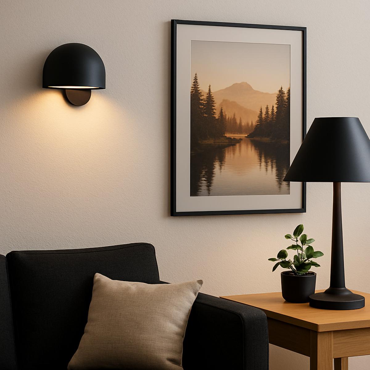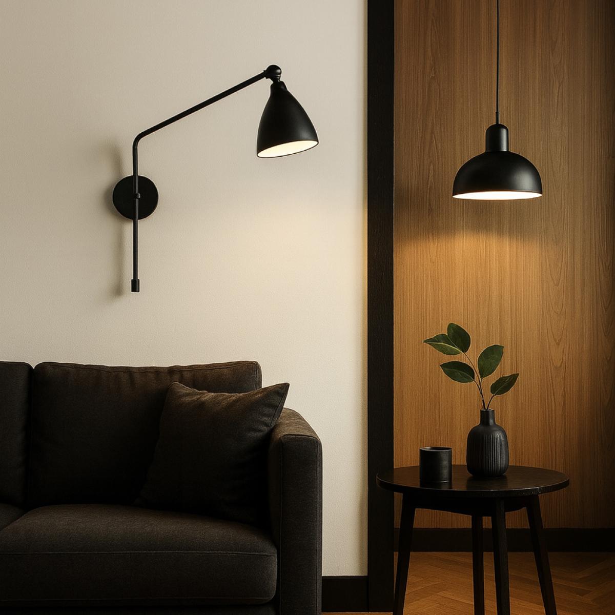 黒はどんな空間でも引き締め効果を発揮する万能カラー。ここ数年、家具や建具の色をそろえる傾向がありましたが、単調で物足りないという声も一定数あります。そこで黒い照明や黒縁シェードをポイントで使うと、空間にメリハリが出て高級感が増します。ナチュラルカラーや木目との相性も良く、シンプルな部屋が一気に洗練された印象に。