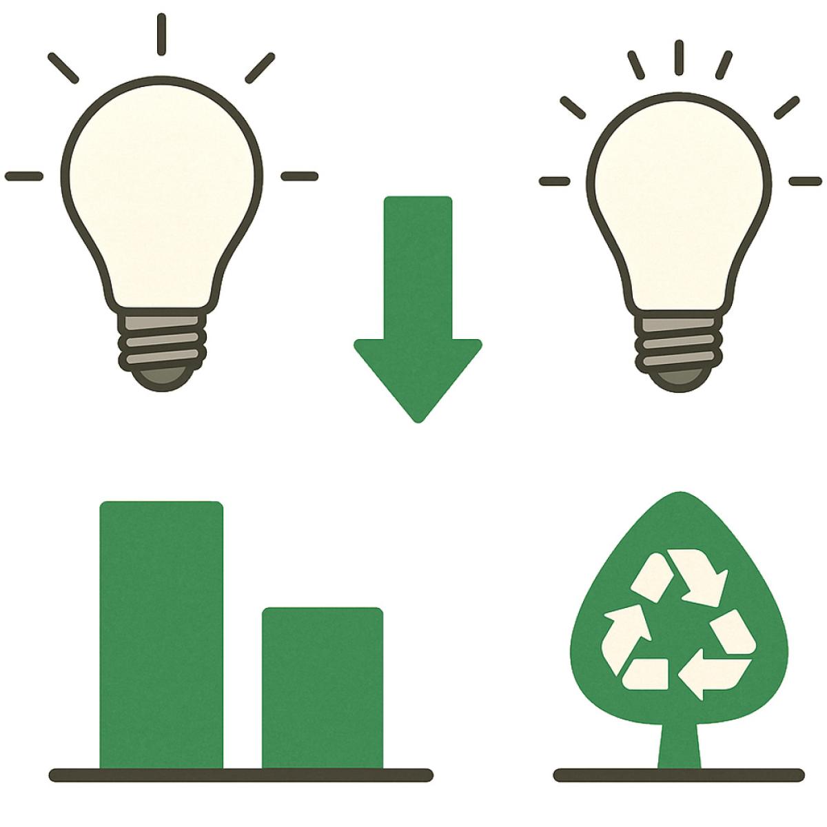 「LEDだから安心」と思っていませんか? LEDもこの10年で進化し、最新のLEDは同じ明るさでも10年前と比べて約半分の消費電力で使えるという試算もあります。国も省エネ基準の見直しを進め、LED化や調光機能・人感センサーの活用を推奨中。照明交換のタイミングで省エネタイプに替えると、電気代削減と快適さが同時にかないます。