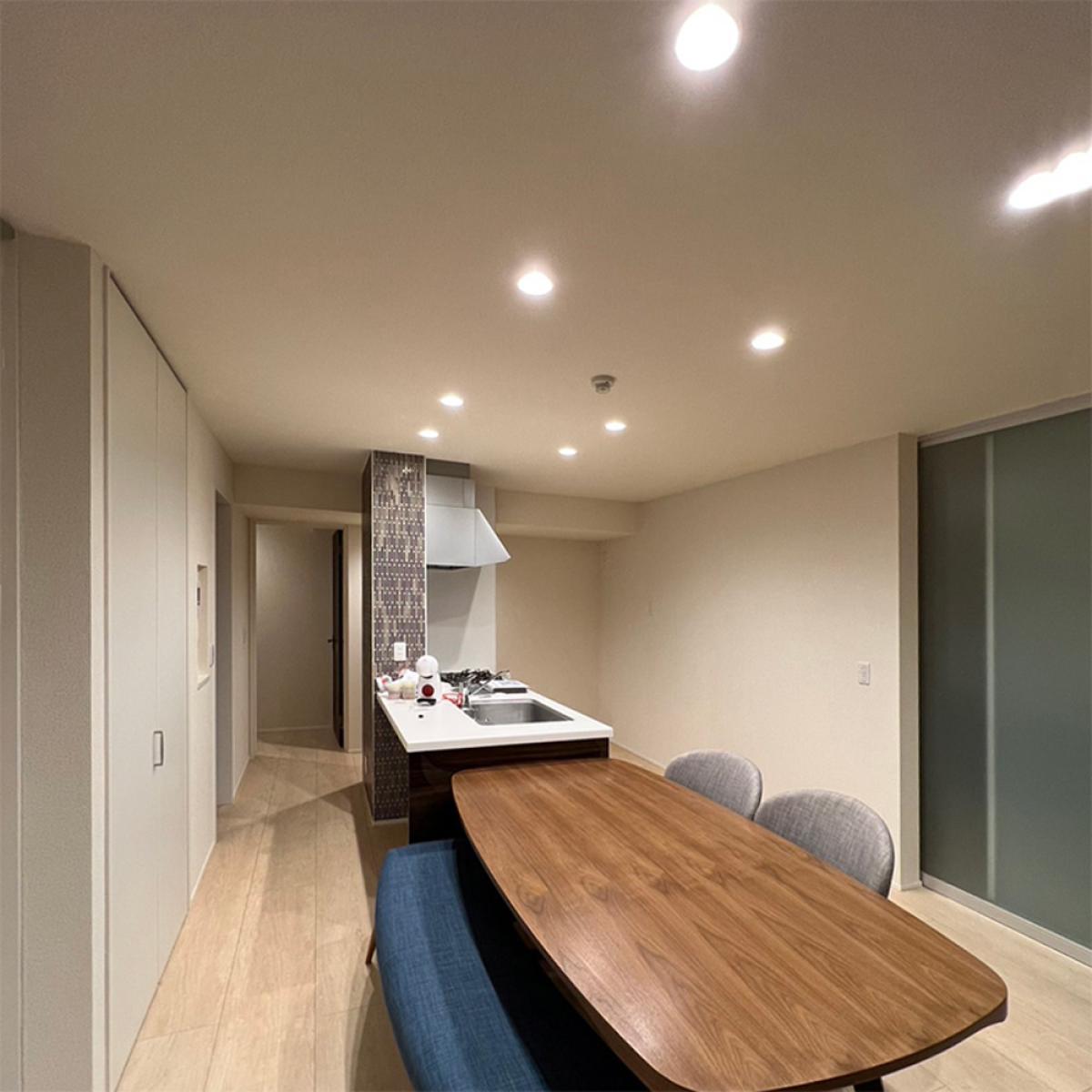 ダウンライトは天井に埋め込むタイプの照明で、器具が目立たず天井がフラットに見えます。部屋が広く感じられるのでリビングや廊下でも人気。光の配置を工夫すると「ここは明るく、ここは落ち着かせる」といったゾーニング照明ができ、空間にメリハリが出ます。最近はリフォームで後付けするおうちも増えていて、天井裏のスペースさえあれば設置できることが多く、思ったより気軽に取り入れられます。