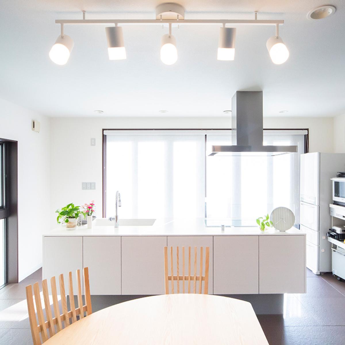 最初にレールをつけておくと、あとから照明を追加したいときにも簡単に対応できます。