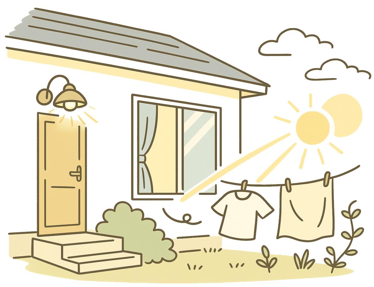 虫が寄りやすい家には、光の反射や風の流れ、外壁色など、複数の環境要因が重なっていることがあります。玄関まわりの照明の位置やベランダの採光など、住まいの周辺環境を把握することで、対策の方向性も見えてきます。