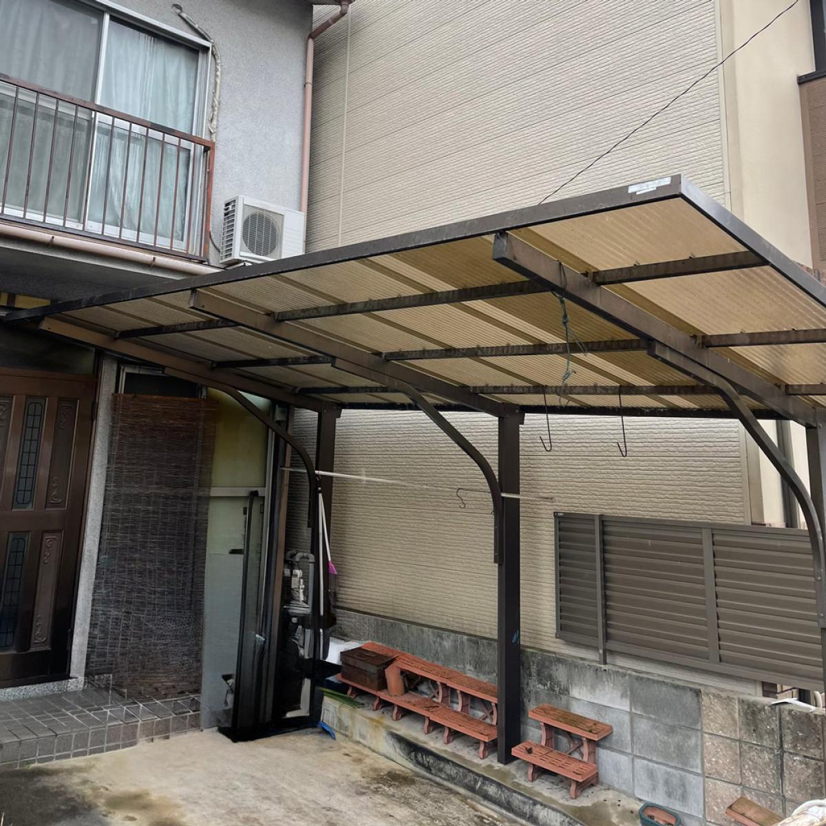 今回は、京都市のM様邸より カーポートの波板貼替工事 のご依頼をいただきました。長年使用されてきたカーポートは、屋外で常に紫外線・風雨を受けるため、特に屋根材の劣化が早く進みがちです。M様邸でも、経年劣化によって波板が「バリバリに割れてしまっている」「強風で飛んでいきそうで心配」という状態になっており、安全面からも早めの交換が必要でした。