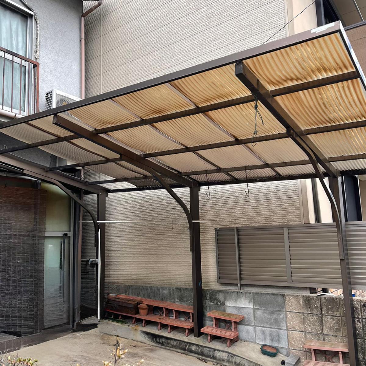 カーポートの屋根材は、日頃なかなか近くで確認しない場所だからこそ、気づかないうちにひび割れ・変色・たわみが進行してしまいます。劣化した波板は少しの衝撃でも割れやすく、飛散すればご近所への被害やケガにつながる恐れもあります。今回は、既存の古い波板をすべて撤去し、耐久性に優れた ポリカーボネート板へ交換することで、見た目の明るさと安全性、そして長寿命化が大幅に向上しました。