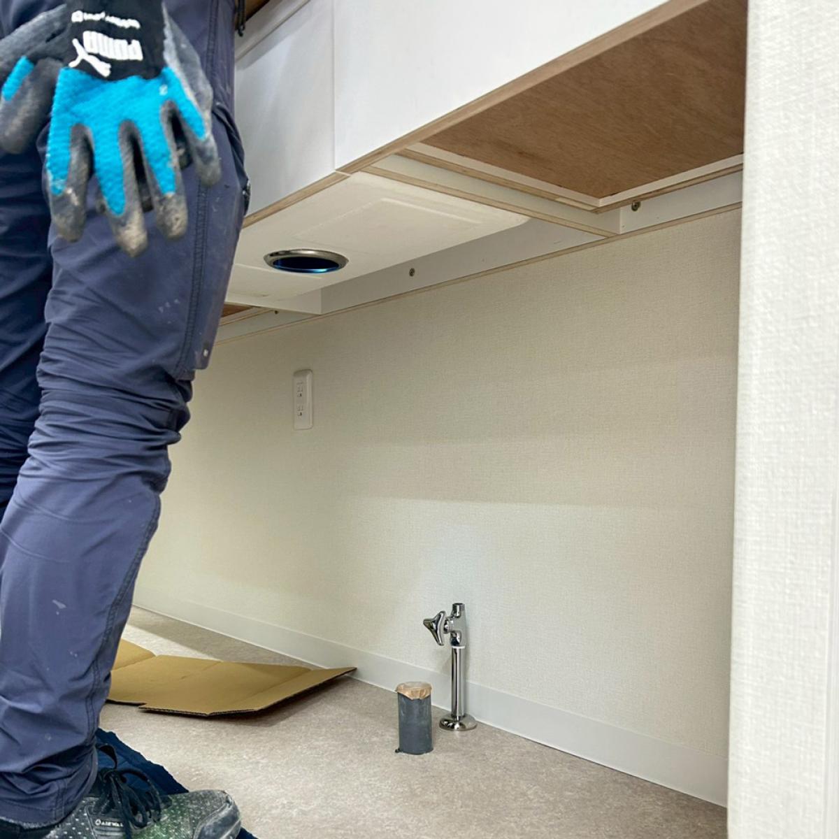 シンク下では、給水管・排水管の立ち上げ位置を確認しました。重要なのは、つながればOKではなく、長期的に詰まりにくく、点検しやすい配管ルートになっているかという視点です。排水は無理な曲がりや逆勾配があると流れが悪くなり、削り粉や汚れが溜まりやすくなります。