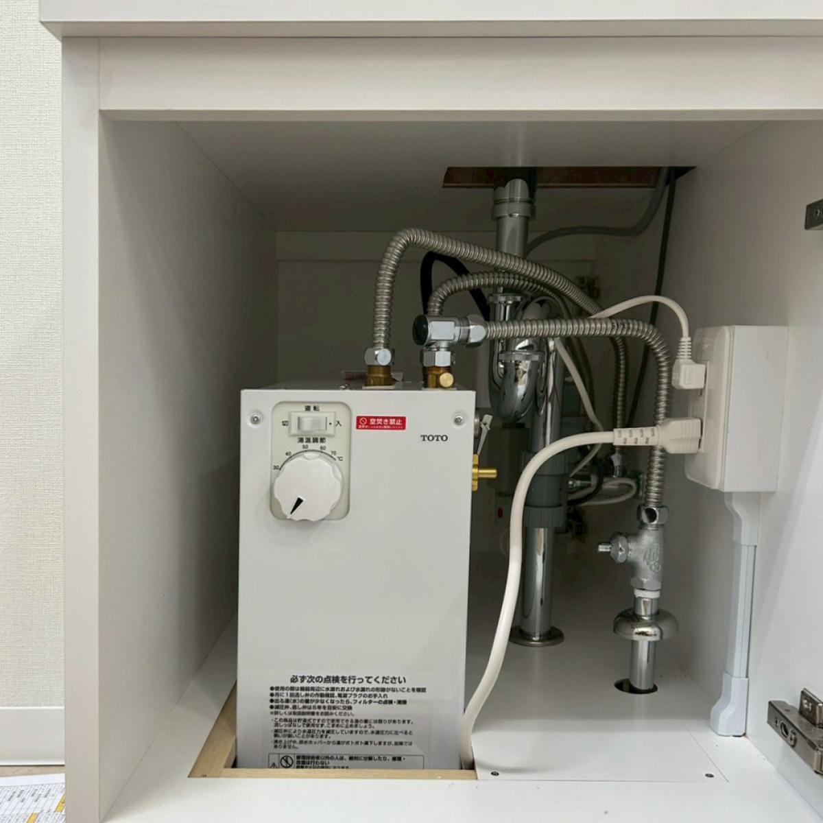 内部には電気温水器を収めつつ、点検性・安全性を確保した構成としています。
