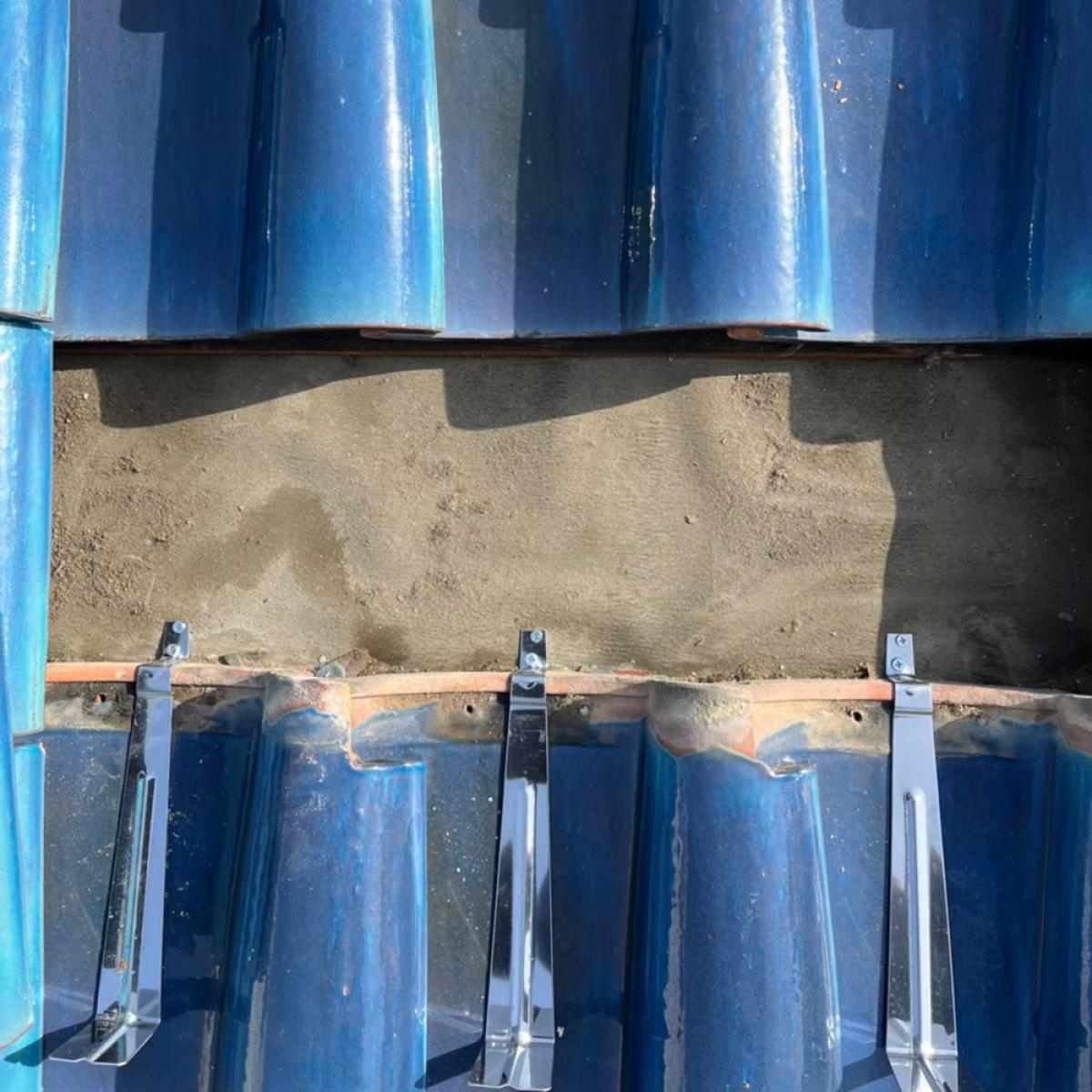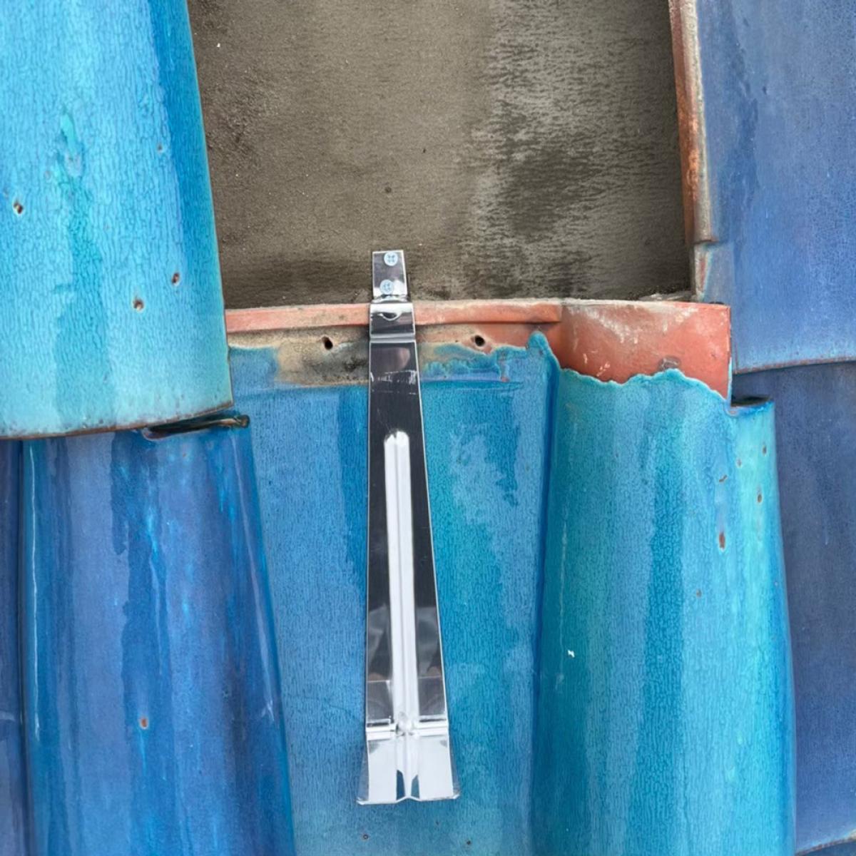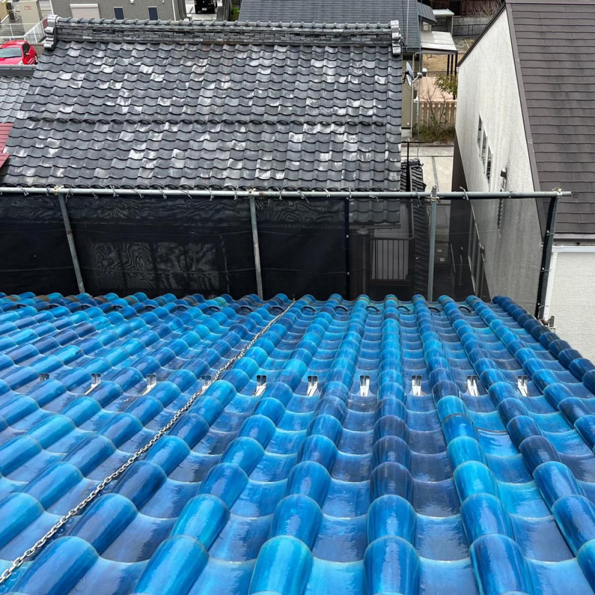 復旧では一枚ごとに指で揺らし、ガタつきがないか確認します。わずかな浮きでも風の吹き込みや雨水侵入の原因になるため、目視と手の感触の両方でチェックします。最後に屋根全体へ散水を想定した流れを確認し、水が溜まりやすい箇所がないかを判断。仕上がりの見た目だけでなく機能面まで確認して完了とします。金具設置後は瓦を元の位置に戻し、ズレや浮きがないかを確認します。この工程では見た目の仕上がりだけでなく、水の流れを阻害しないかもチェックします。屋根は雨を流す構造のため、わずかな段差でも雨水が溜まる原因になります。施工後は屋根全体を点検し、安全性と防水性を確認して作業完了です。